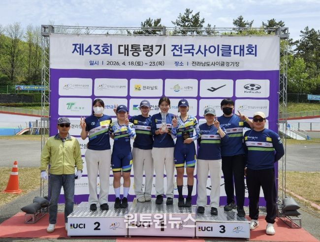 (원투원뉴스) 상주시청 여자 사이클팀이 전남 나주시 일원에서 열린 ‘제43회 대통령기 전국사이클대회’에서 종합준우승과 함께 최우수지도자상(이형주 코치)을 차지했다.