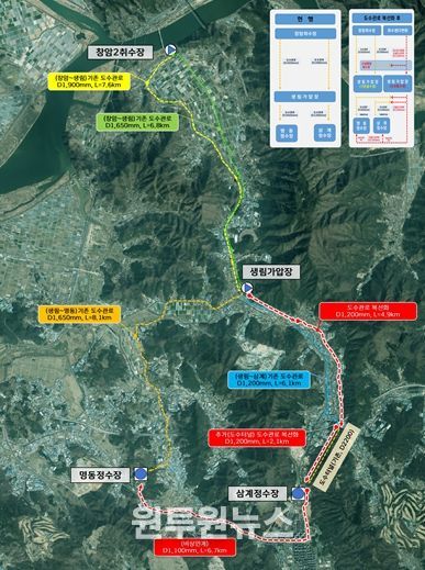도수관로는 취수원(원수)에서 정수장까지 원수를 운반하며 송수관로는 정수장에서 배수지(수돗물 저수지)로 송수하기 위한 관로이다. 해당 사업은 올해부터 2045년까지 20년 동안 총 1,802억원이 투입되며 도수관로를 시작으로 복선화사업을 점진적으로 완료한다.