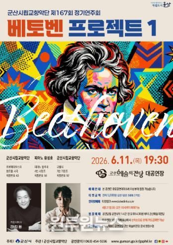 (원투원뉴스) 군산시립교향악단이 오는 6월 11일 오후 7시 30분, 군산예술의전당 대공연장에서 제167회 정기연주회 ‘베토벤 프로젝트 I’를 개최한다.