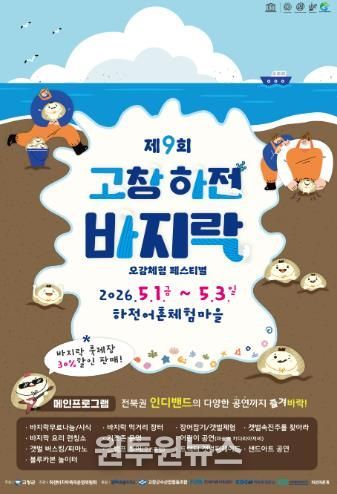 (원투원뉴스) 고창군이 오는 5월1~3일 심원면 하전어촌체험마을 일원에서 ‘제9회 하전바지락 오감체험 페스티벌’을 개최한다고 밝혔다.
