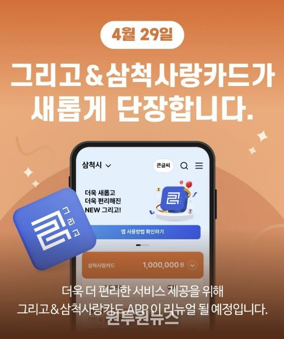 시 관계자는 “이번 앱 개편을 통해 시민들이 보다 쉽고 편리하게 삼척사랑카드를 이용할 수 있을 것으로 기대한다”라며 “앞으로도 시민과의 소통을 강화하고 지역 기반 디지털 플랫폼으로 지속 발전시켜 나가겠다”라고 밝혔다.