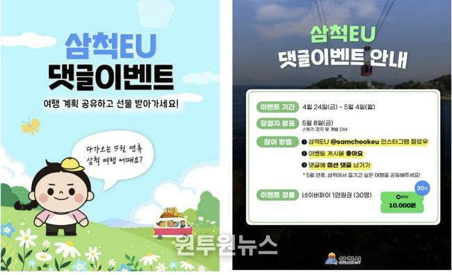 아울러 관광지 운영과 함께 온라인 홍보도 강화한다. 삼척시 공식 관광 SNS 채널 ‘삼척EU’를 통해 5월 가정의 달을 겨냥한 참여형 이벤트를 마련해 관광객과 시민의 관심을 유도할 계획이다.