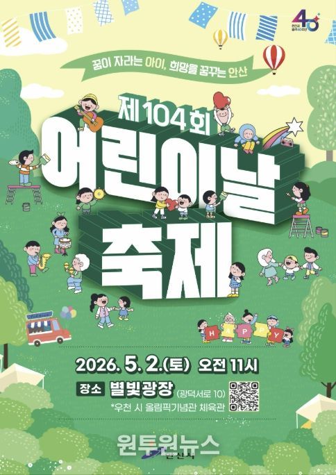 (원투원뉴스) 안산시는 다가오는 어린이날을 맞아 온 가족이 함께 즐길 수 있는 ‘제104회 어린이날 축제’를 별빛광장에서 개최한다고 28일 밝혔다.