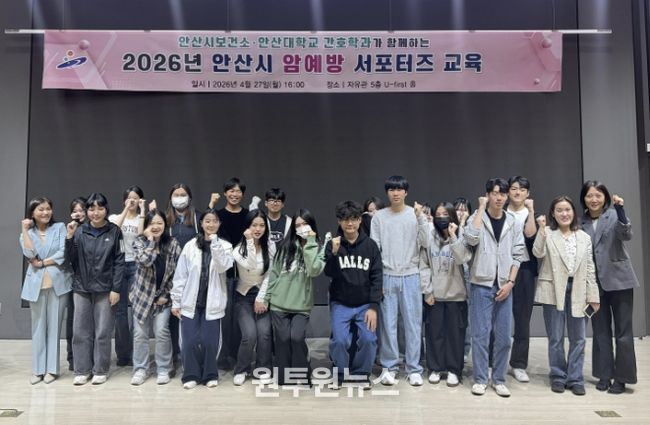 (원투원뉴스) 안산시는 지난 27일 안산대학교 자유관 U-first 홀에서 ‘2026년 안산시 암 예방 서포터즈 발대식 및 교육’을 개최했다고 28일 밝혔다.