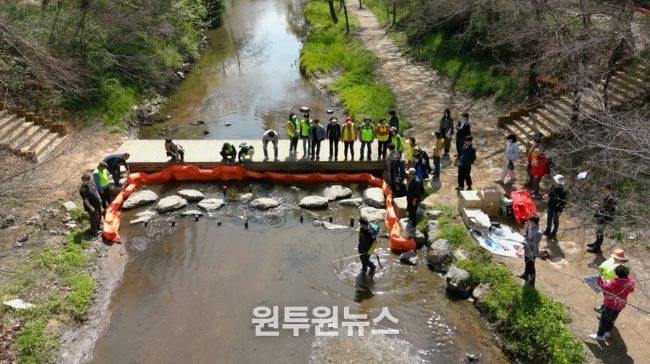 훈련은 유류가 하천으로 유입된 상황을 설정하고, 유관기관 간 협조체계를 점검하는 한편 실제 사고 발생 시 신속하고 효율적인 대응 역량을 강화하는 데 중점을 두었다.