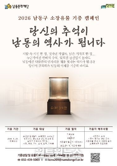 남동문화재단은 소래역사관을 중심으로 ‘2026 남동구 소장유물 기증 캠페인’을 오는 4월 20일부터 연중 상시 운영한다고 28일 밝혔다.