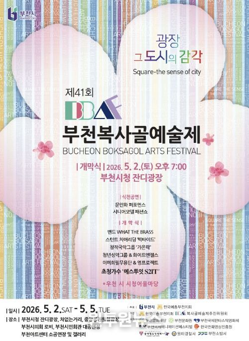 (원투원뉴스) 부천시는 ‘제41회 부천복사골예술제’를 5월 2일부터 5일까지 4일간 부천시청 잔디광장과 중앙공원, 부천아트센터 일원에서 연다.