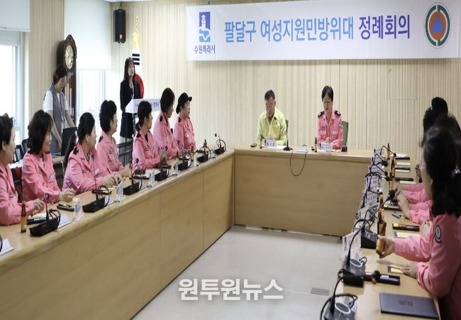 (원투원뉴스) 수원시 팔달구는 지난 27일, 팔달구청 상황실에서 여성지원민방위대 4월 정례회의를 개최했다.
