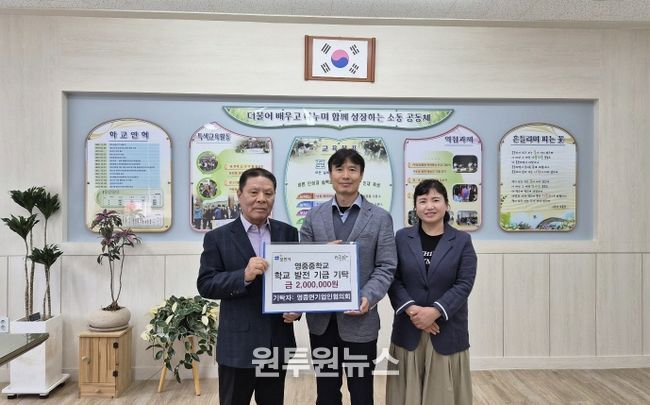 이현주 영중중학교장은 “영중면기업인협의회의 관심과 지원에 감사드린다”며 “기탁금은 학생들이 바르게 성장할 수 있도록 소중히 사용하겠다”고 전했다.
