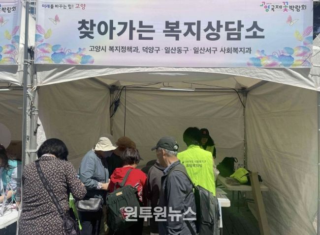 (원투원뉴스) 고양특례시 일산서구는 2026고양국제꽃박람회 개막일인 지난 24일 일산호수공원 광장 내 공공기관 홍보부스에서 ‘찾아가는 복지상담소’를 운영했다.