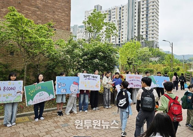 (원투원뉴스) 위례숲초는 4월 29일부터 30일까지 이틀간 등교시간을 활용한 아침맞이 인성캠페인 ‘인성 ON 챌린지’를 운영하며, 일상 속 인성 실천 문화를 확산하고 있다고 밝혔다. 이번 캠페인은 기존 ‘새·로·이 학교문화 책임규약’을 발전시킨 ‘하·루·온(ON) 인성 프로젝트’의 일환으로, 인성을 ‘약속’에서 ‘습관’으로 정착시키기 위한 실천 중심 활동으로 추진됐다.