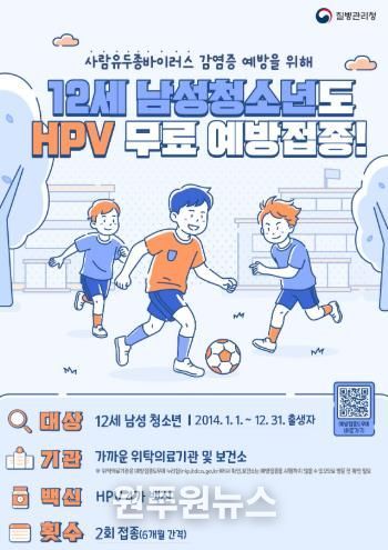 (원투원뉴스) 영암군이 사람유두종바이러스(HPV) 감염 예방을 위한 국가예방접종 지원 대상을 12세 남성 청소년까지 확대한다.