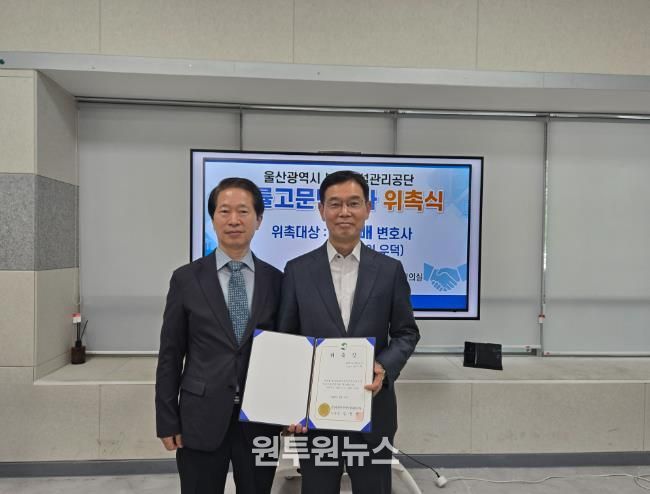 (원투원뉴스) 울산광역시 북구시설관리공단은 지난 28일 공단 회의실에서 전문적인 법률 자문 등을 통한 효율적인 법무 업무 수행을 위해 법률고문변호사 위촉식을 개최했다고 밝혔다.