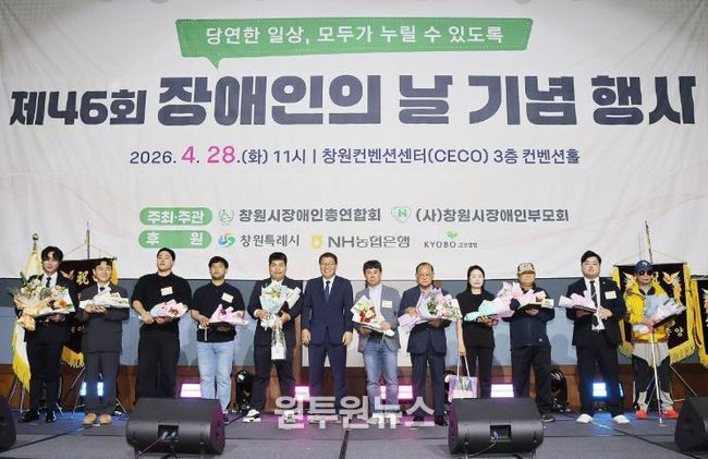 (원투원뉴스) 창원특례시는 28일 창원컨벤션센터 컨벤션홀에서 장애인 등 1,100여명이 참석한 가운데 ‘제46회 장애인의 날 기념식’을 성황리에 개최했다고 밝혔다.