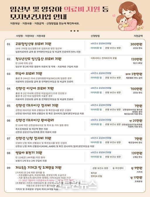 모자보건사업은 '모자보건법'과'저출산·고령사회기본법'에 근거해 임산부의 건강한 임신·출산을 지원하고, 신생아와 영유아가 건강하게 성장할 수 있도록 돕는 국가 핵심 보건정책이다.