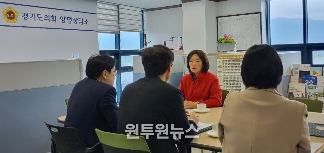 (원투원뉴스) 경기도의회 기획재정위원회 부위원장 이혜원 의원 (국민의힘, 양평 2) 은 27일 양평상담소에서 경기도청 기획담당관 관계자와 함께 '경기도 행정기구 및 정원조례 개정' 관련 업무보고를 받고, 국가지원 지방도 건설 사업 및 지방채 발행 관련한 주요 현안을 점검했다.