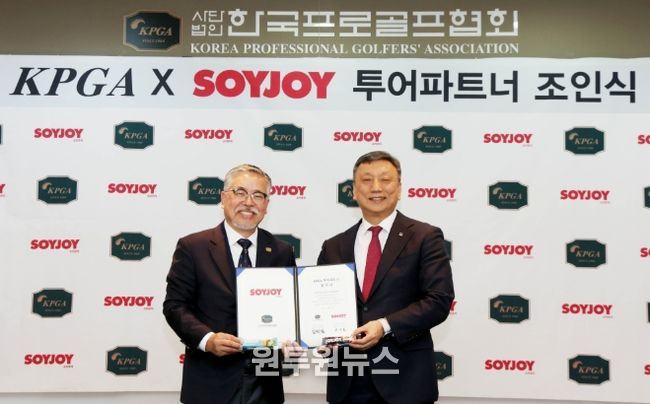 (원투원뉴스) ㈜한국프로골프투어(KPGT)가 한국오츠카제약㈜의 건강 간식 브랜드 '소이조이(SOYJOY)'와 손을 잡고 선수들의 건강한 투어 생활을 지원한다.