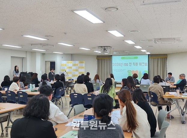 (원투원뉴스) 인천여성가족재단은 4월 28일 재단 소강당에서 전 직원을 대상으로 ‘2026년 ESG 전 직원 워크숍’을 열고, ESG 경영 내재화와 성과 중심 실행체계 구축 방안을 논의했다.