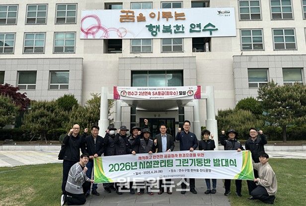 (원투원뉴스) 연수구시설안전관리공단은 4월 28일 연수구청 한마음 잔디광장에서 쾌적하고 안전한 공공청사 환경 조성을 위한 ‘2026년 시설관리팀 그린기동반 발대식’을 개최했다.