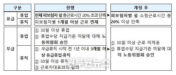 휴업, 휴직 등 유형별로 달리 정하고 있는 고용유지지원금 지원 요건은 ‘근로를 제공하지 아니하는 조치’로 통일된다. 복잡한 신청 요건을 단순화하여 현장의 이해와 활용도를 높일 수 있을 것으로 기대된다.