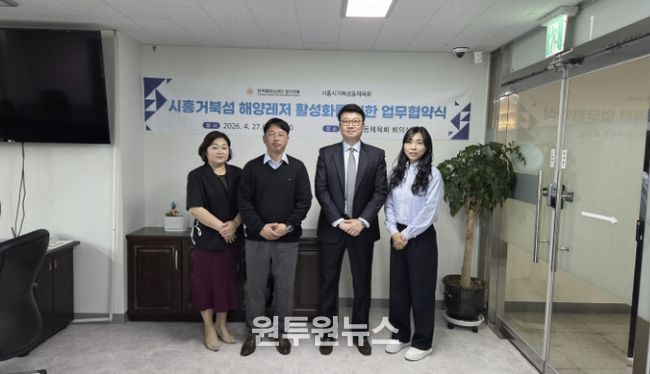 (원투원뉴스) 시흥시 거북섬동 체육회는 지난 4월 27일 한국해양소년단 경기연맹 월곶동 사무실에서 해양레저 교육 프로그램 공동 개발을 위한 업무협약을 체결했다.