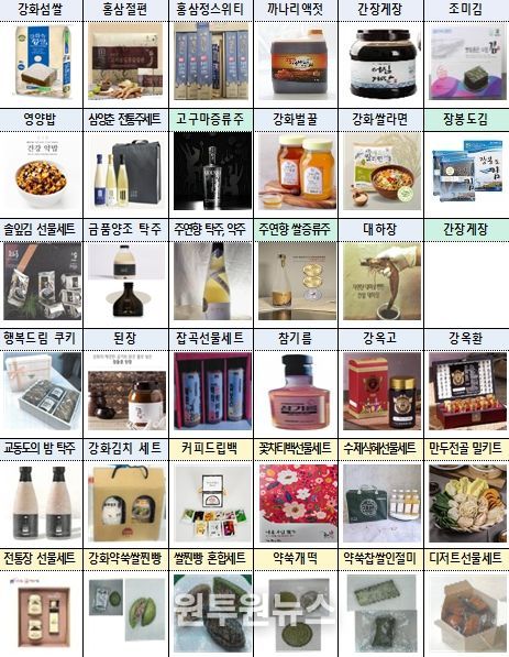 최종 확정된 답례품은 총 63개 품목이다. 강화섬쌀, 강화벌꿀, 간장게장, 펜타포트 락 페스티벌 할인권 등 기존 인기 품목은 그대로 유지된다.