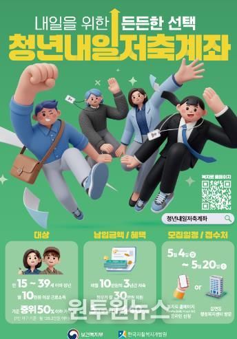 (원투원뉴스) 군산시가 일하는 청년의 안정적인 경제적 자립과 자산 형성을 지원하기 위해 ‘2026년 청년내일저축계좌’ 신규 참여자를 5월 4일부터 20일까지 모집한다