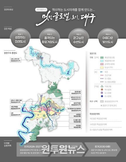 (원투원뉴스) 대구광역시는 변화된 도시 여건과 미래 공간구조를 반영한 ‘2040 대구광역시 경관계획’을 수립하고, 도시 전반의 경관관리 체계를 새롭게 정립한다.