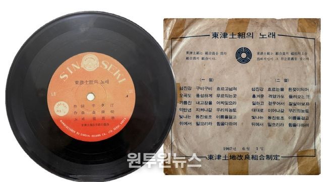 이번 전시는 지난 1968년 제작된 '동진토조의 노래'음반을 중심으로, 농업 기반 지역 공동체의 문화와 정서를 조명한다. 해당 음반은 1925년 창립된 동진토지개량조합의 창립 42주년을 기념해 제작된 것으로, 작사자 ‘신석정(辛夕汀)’으로 표기되어 있으며 조합원의 결속과 지역 정체성을 담아낸 기록물이다.