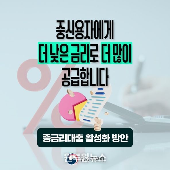 금융위원회는 포용금융 확산을 위한 중금리대출 활성화 방안을 논의하였습니다.