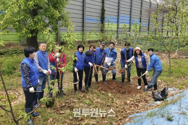 이번 정비에는 주민자치회 위원과 지역 주민 20여 명이 참여해 법면을 정리하고 밤나무 묘목을 추가로 심었다. 참여자들은 함께 흙을 고르고 나무를 심으며 동산에 새로운 생기를 더했다.