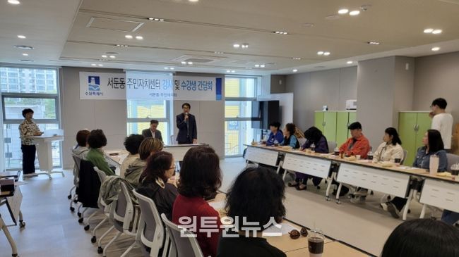(원투원뉴스) 수원시 권선구 서둔동 주민자치회는 지난 27일 신청사에서 주민자치센터 프로그램 운영 활성화를 위해 2026년 권선구 서둔동 주민자치센터 강사 및 수강생 간담회를 개최했다.