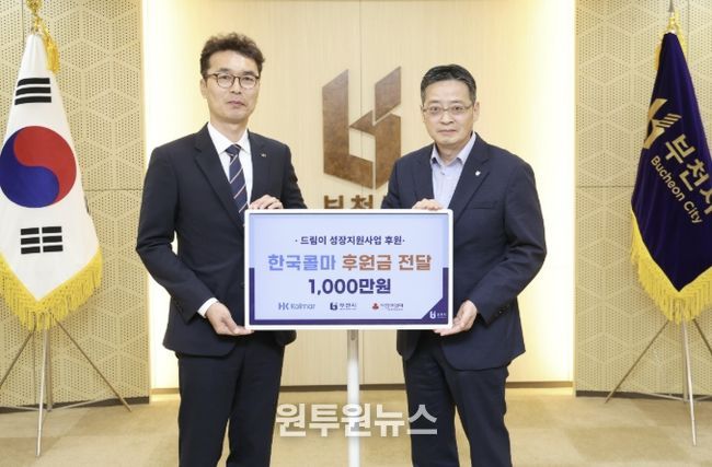(원투원뉴스) 부천시는 지난 28일 한국콜마로부터 취약계층 아동 지원을 위한 후원금 1,000만 원을 전달받았다. 후원금 전달식에는 변성배 한국콜마 부천사업장 메이크업생산 그룹장과 남동경 부천시장 권한대행이 참석해 민관 협력의 의미를 더했다.