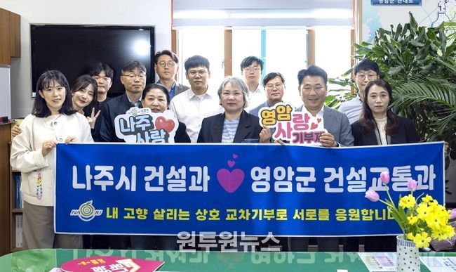 (원투원뉴스) 전남 나주시 건설과와 영암군 건설교통과는 고향사랑기부제 활성화와 지역 간 상생협력을 위해 지난 28일 ‘2026 고향사랑기부제 상호 교차 기부’ 행사를 가졌다고 29일 밝혔다.