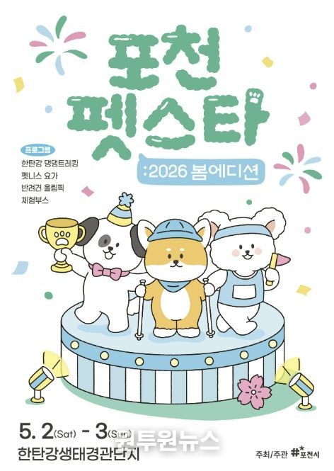 (원투원뉴스) 반려동물 친화관광도시 포천시는 오는 5월 2일부터 3일까지 이틀간 한탄강생태경관단지에서 ‘2026 포천 펫스타 봄 에디션’을 개최한다.