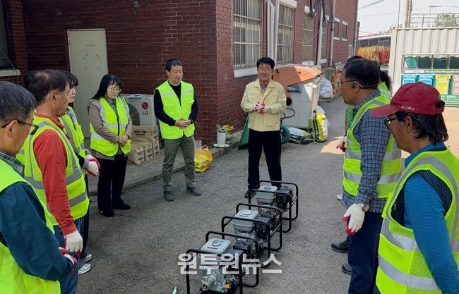 이번 점검에는 자율방재단원과 관계 공무원이 함께 참여해 양수기와 수중펌프 등 수방장비의 작동 상태를 확인하고, 실제 침수 상황을 가정한 시운전을 통해 현장 대응력을 점검했다.