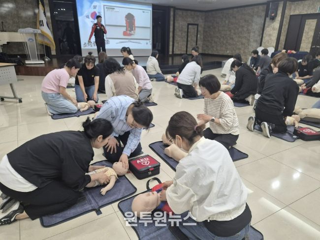 (원투원뉴스) 양평군육아종합지원센터는 지난 22일부터 24일까지 3일간 양평군평생학습센터 온누리실에서 관내 보육교직원 270여 명을 대상으로 ‘2026년 상반기 어린이 안전교육(응급처치 실습)’을 실시했다.