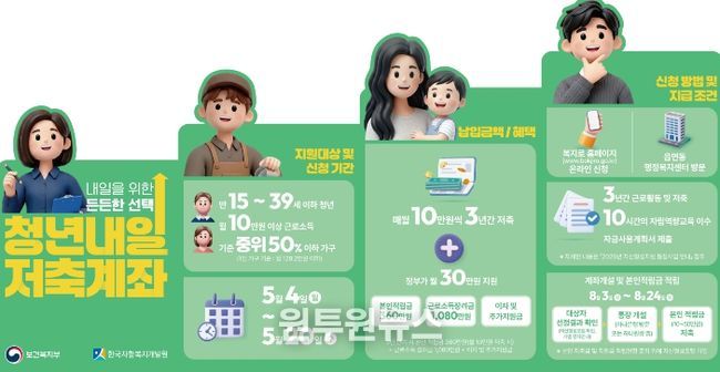 (원투원뉴스) 안성시는 일하는 청년의 근로 의욕을 높이고 자립기반을 마련할 수 있도록 5월 4일부터 5월 20일까지'청년내일저축계좌' 신규 가입자를 모집한다.