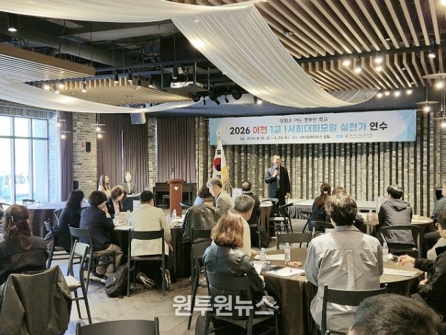 (원투원뉴스) 이천교육지원청은 4월 29일부터 30일까지 1박 2일간 에덴파라다이스호텔에서 관내 소속 모든 교(원)감을 대상으로 ‘2026 이천 1교 1서희대화모임 실천가 역량 강화 연수’를 운영한다.