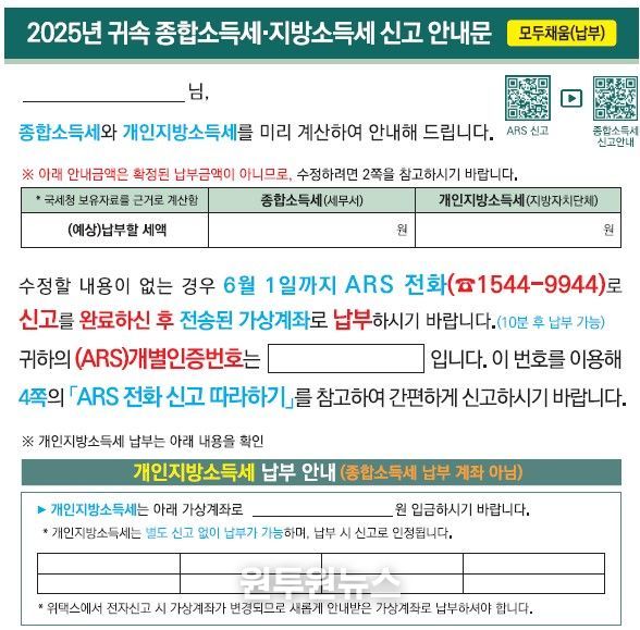 국세청은 납세자 중심의 신고 환경을 조성하기 위해 홈택스, 손택스, ARS 등 신고 시스템 전반을 고도화하고, 신고 안내문을 대폭 개선했다.