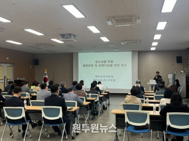 (원투원뉴스) 제천교육지원청은 4월 29일, 관내 초·중·고 관리자 및 상담 업무 담당 교사들을 대상으로 ‘청소년의 생명존중 및 생명지킴을 위한 연수’를 실시했다. 이번 연수는 자해·자살 및 학교생활 고위기 학생에 대한 이해를 높이고, 교육공동체가 지지체계로서 심리적 위기에 놓인 학생들에게 안전망 역할을 수행할 수 있도록 마련됐다.