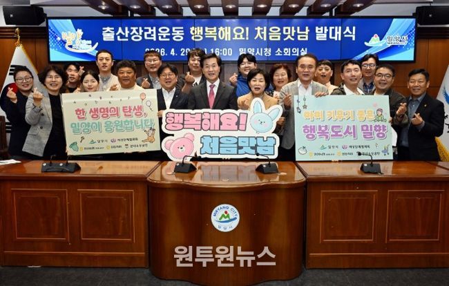 (원투원뉴스) 경남 밀양시는 29일 시청 소회의실에서 밀양시여성단체협의회, 농협은행 밀양시지부, 밀양축산농협, 관내 소상공인 등 관계자 22명이 참석한 가운데 출산장려운동 ‘행복해요! 처음맛남’ 발대식을 개최했다.