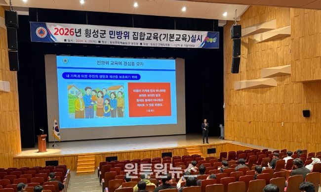 (원투원뉴스) 횡성군이 민방위 대원의 재난 대응 역량 강화를 위해 4월 29일 횡성문화예술회관 대강당에서 ‘2026년 민방위 집합교육’을 실시한다고 밝혔다.