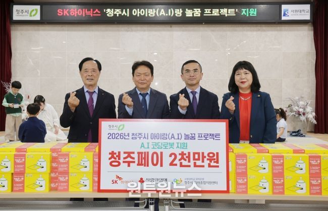 (원투원뉴스) 청주시는 29일 SK하이닉스㈜가 지역 영유아 대상 인공지능(AI) 코딩교육 지원을 위해 2천만원 상당의 청주페이를 청주시육아종합지원센터에 기탁했다고 밝혔다.