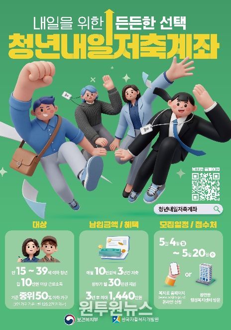 (원투원뉴스) 영등포구가 자립을 준비하는 청년에게 든든한 종잣돈이 될 수 있는 ‘청년내일저축계좌’의 신규 가입자를 5월 4일부터 20일까지 모집한다고 밝혔다.