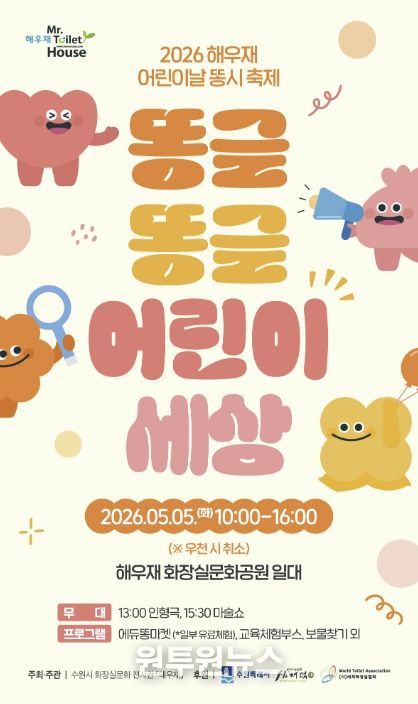 (원투원뉴스) ‘2026 해우재 어린이날 똥시 축제-똥글똥글 어린이 세상’이 5월 5일 오전 10시부터 오후 4시까지 해우재 화장실문화공원 일원에서 열린다.