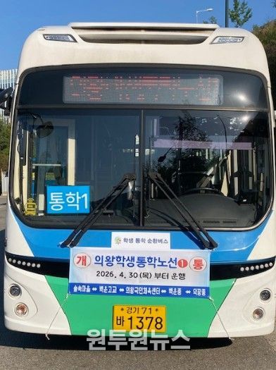 (원투원뉴스) 의왕시는 숲속마을과 청계마을 등 내손·포일·청계 일대 학생들의 안전하고 편리한 등하교 지원을 위한 ‘학생 통학 순환버스’의 운행을 4월 30일부터 시작했다고 밝혔다.