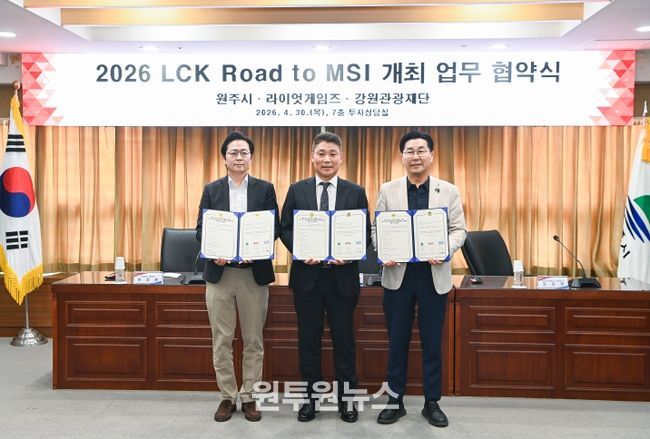 (원투원뉴스) 원주시는 2026 리그 오브 레전드 챔피언스 코리아(LCK) 미드 시즌 인비테이셔널(MSI) 대표 선발전(2026 LCK Road to MSI)의 성공적인 개최를 위해 라이엇 게임즈, 강원관광재단과 손을 맞잡았다.