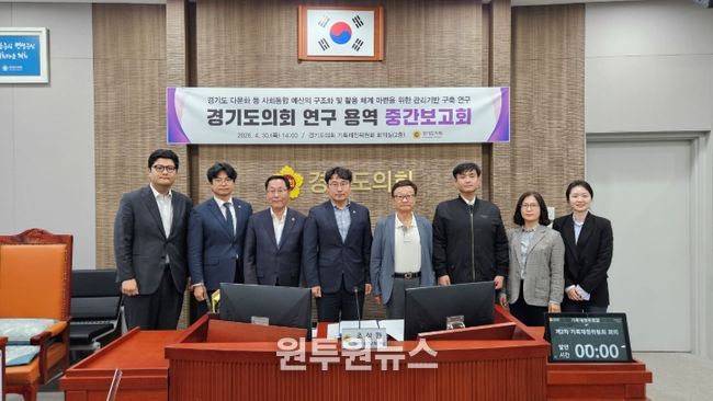 (원투원뉴스) 경기도의회 기획재정위원회 소속 의원 연구단체인 기획재정연구회(회장 조성환, 기획재정위원장)는 30일 오후 경기도의회 기획재정위원회 회의실에서 '경기도 다문화 등 사회통합 예산의 구조화 및 활용 체계 마련을 위한 관리기반 구축 연구'에 관한 연구용역 중간보고회를 개최했다.