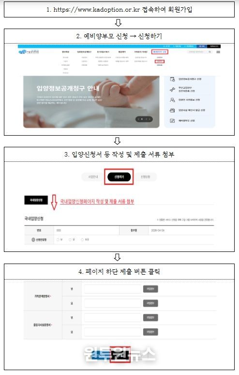 (원투원뉴스) 보건복지부와 아동권리보장원(원장 정익중)은 예비양부모의 입양신청 절차상 불편을 줄이기 위해 온라인 입양신청시스템을 4월 30일부터 정식 개통한다고 밝혔다.